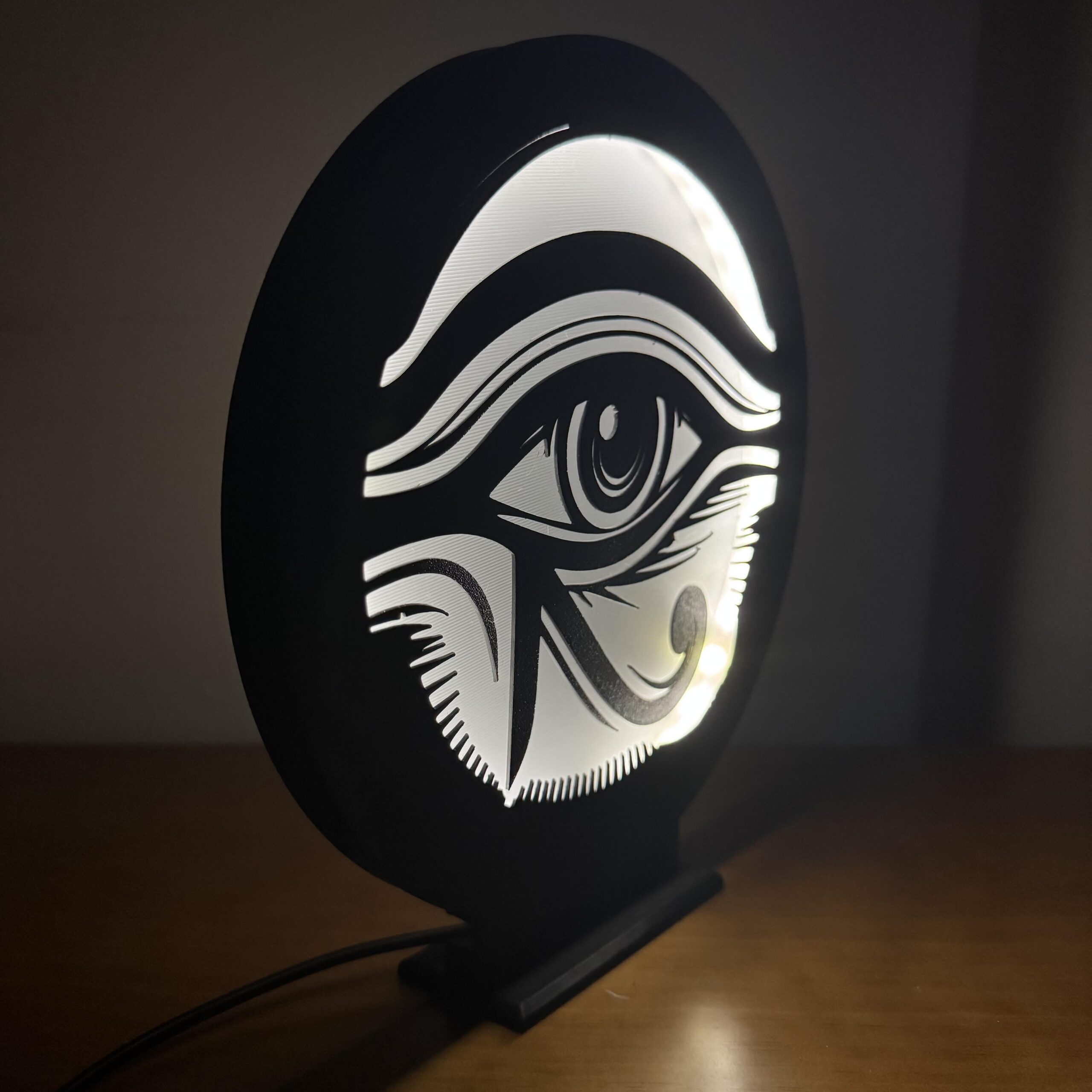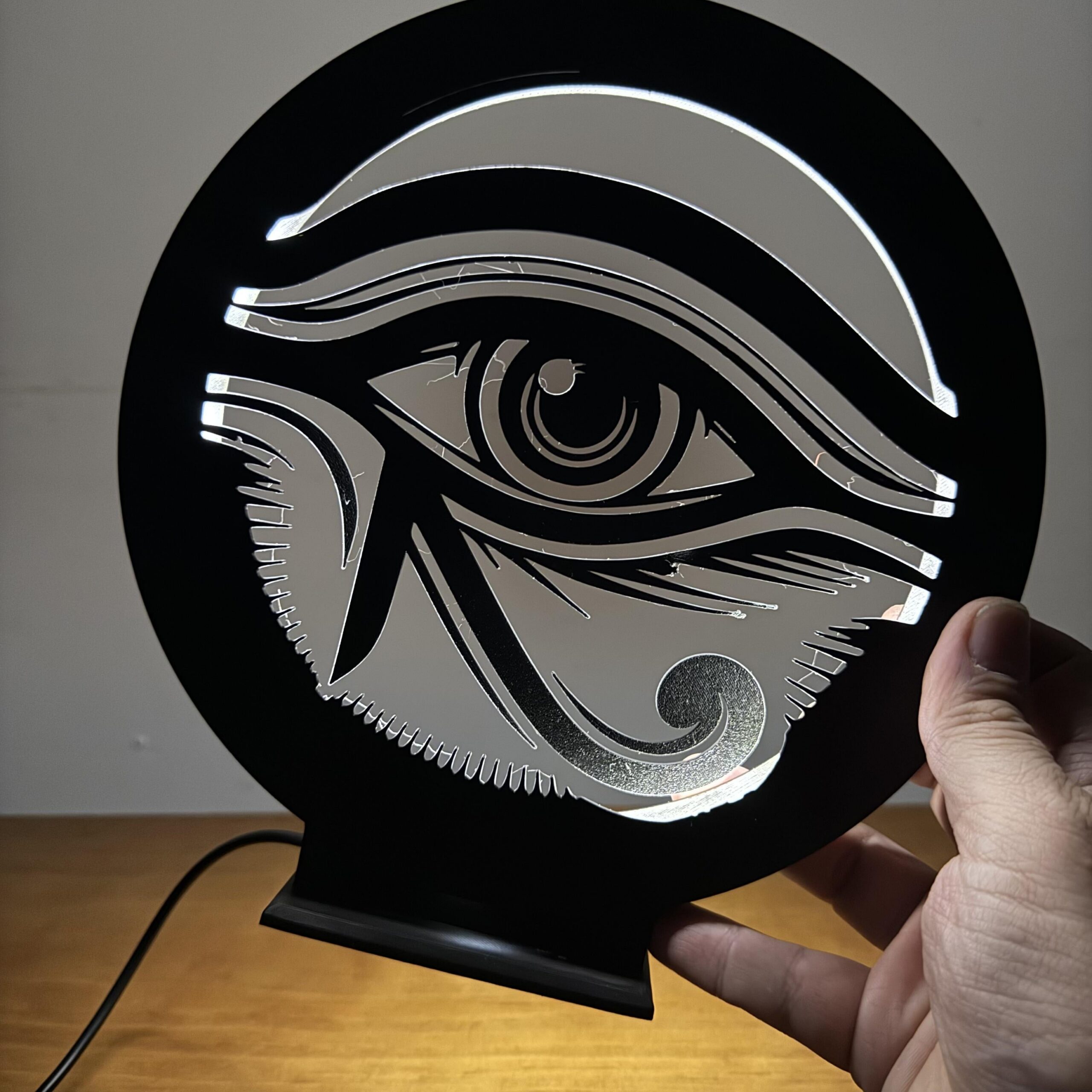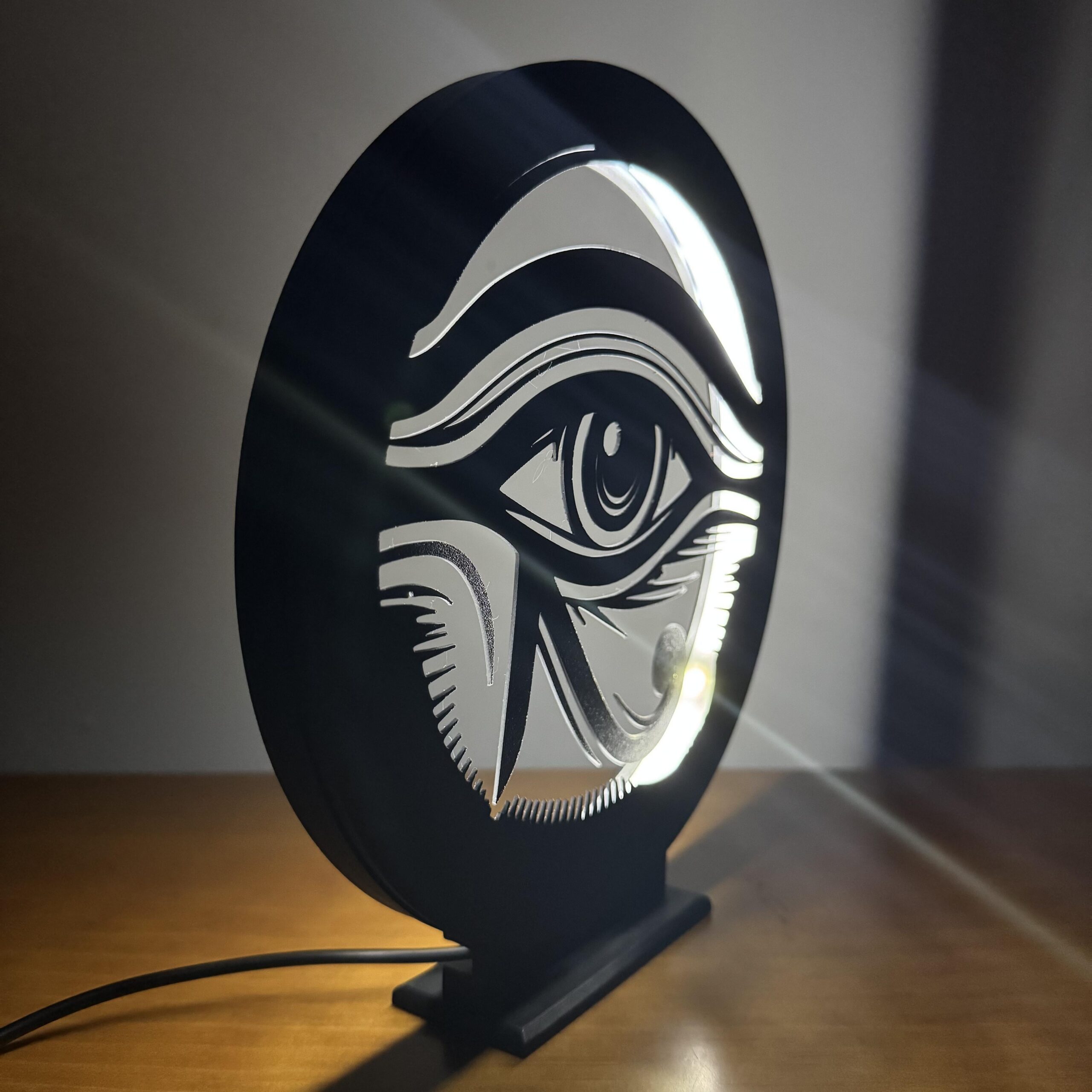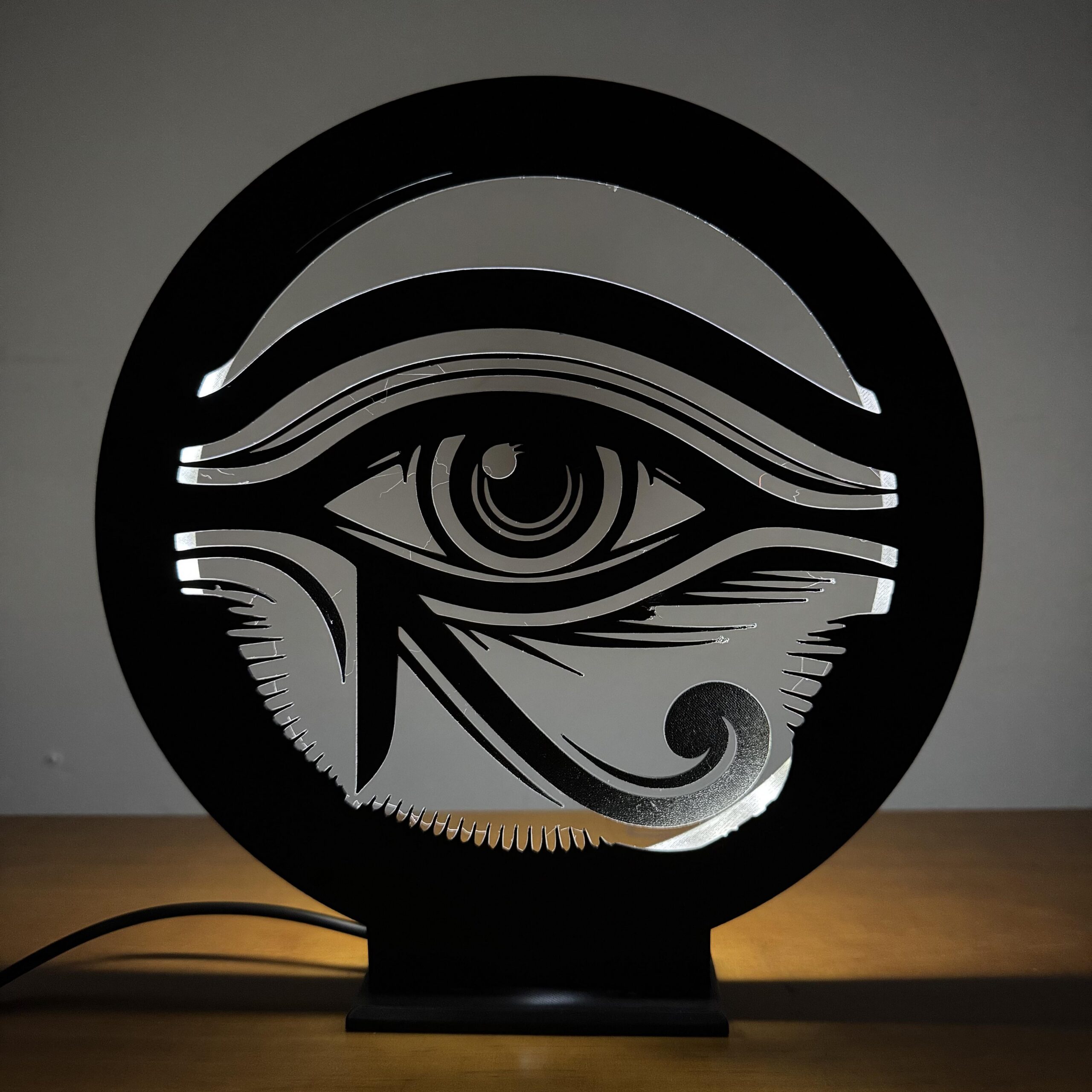 A Luminária LED Olho de Hórus une o visual minimalista da arte oriental com um design urbano que chama atenção mesmo desligada — ligada então, é espetáculo 🔥