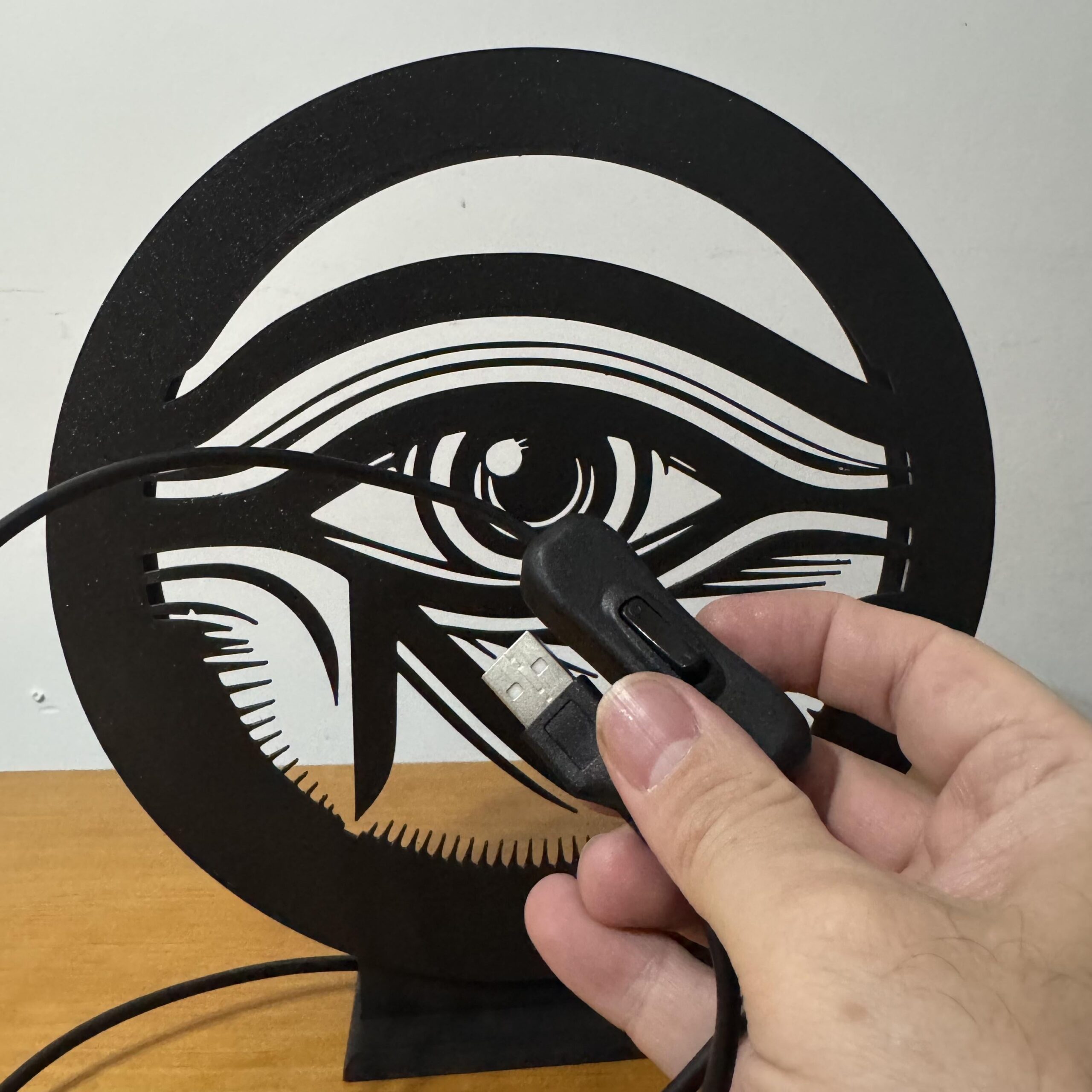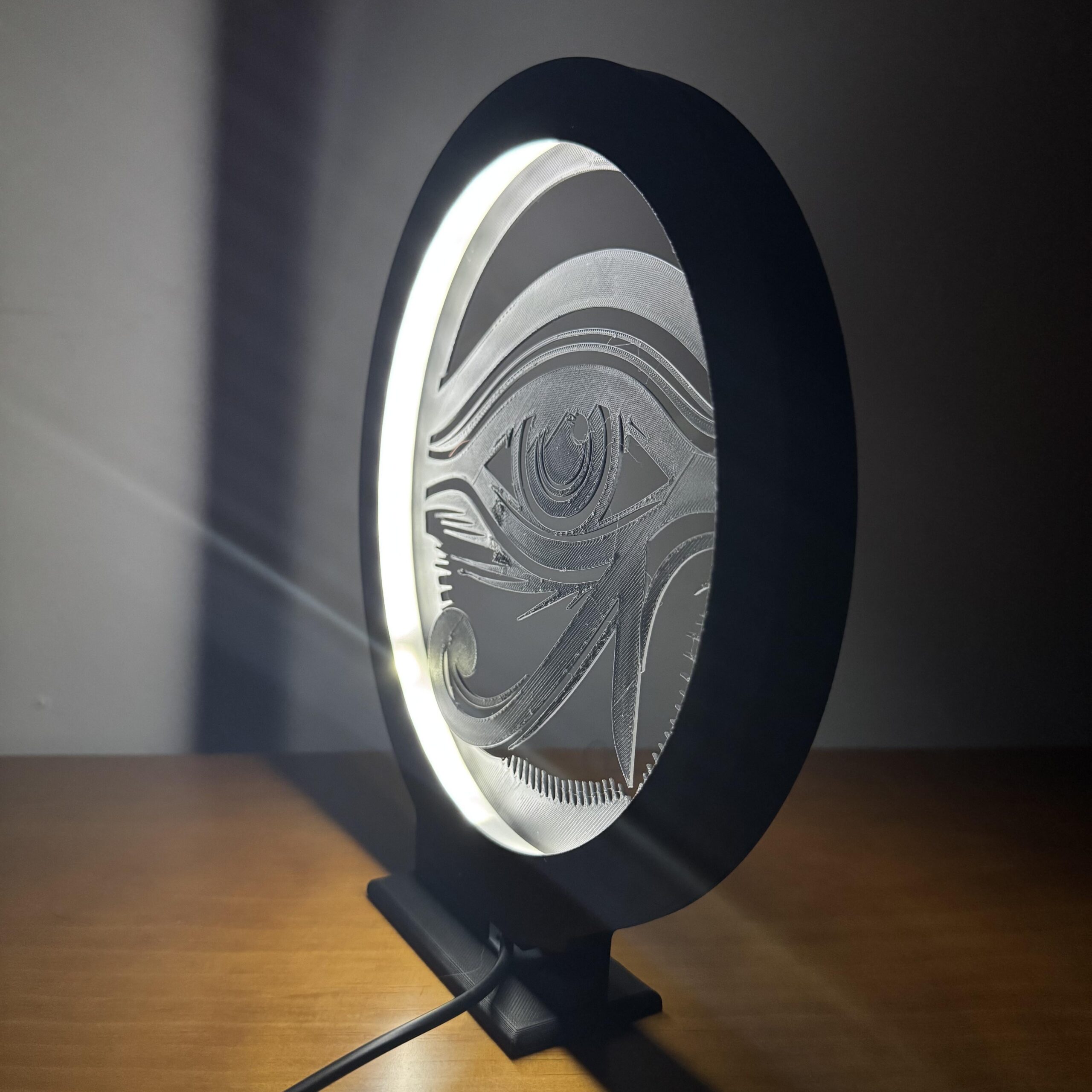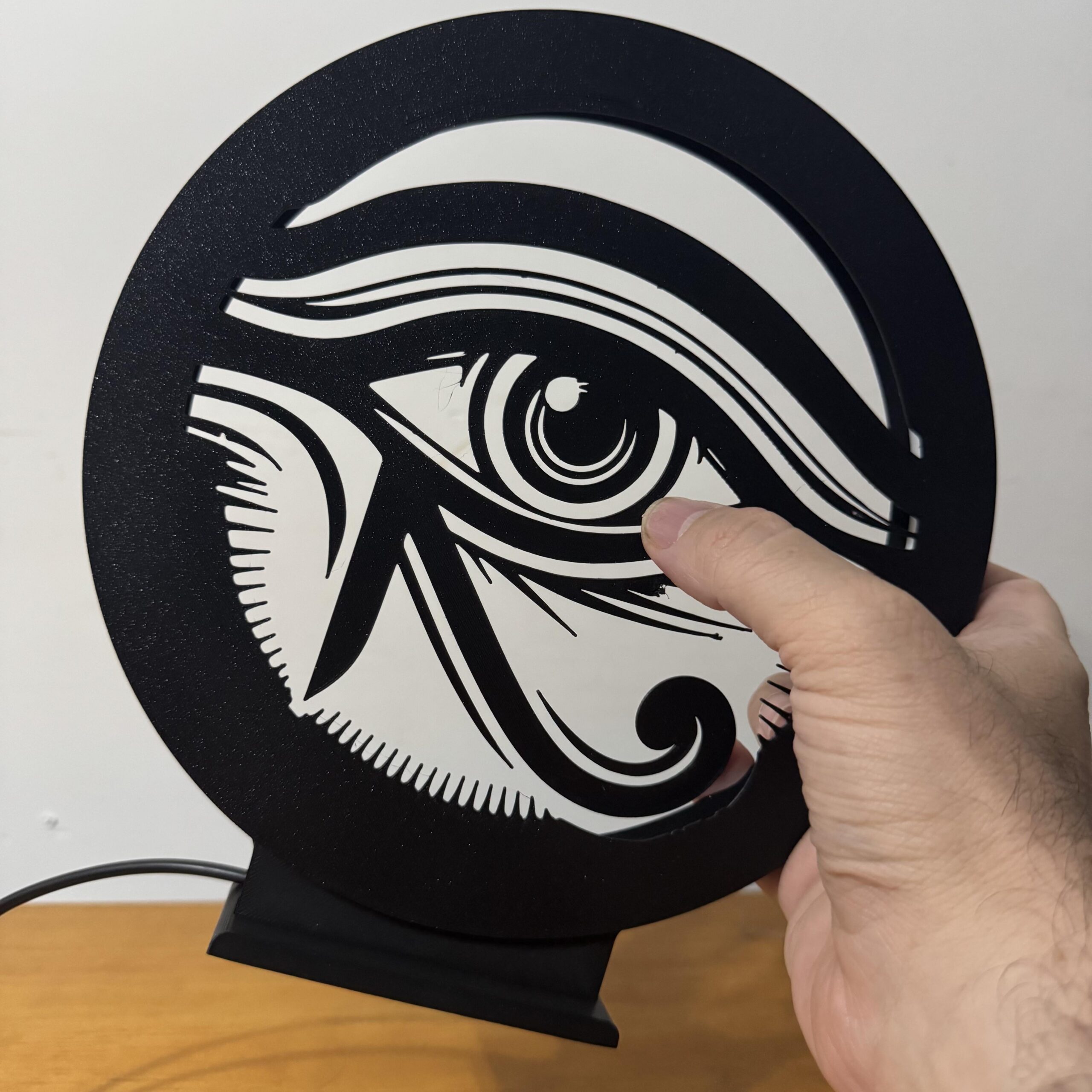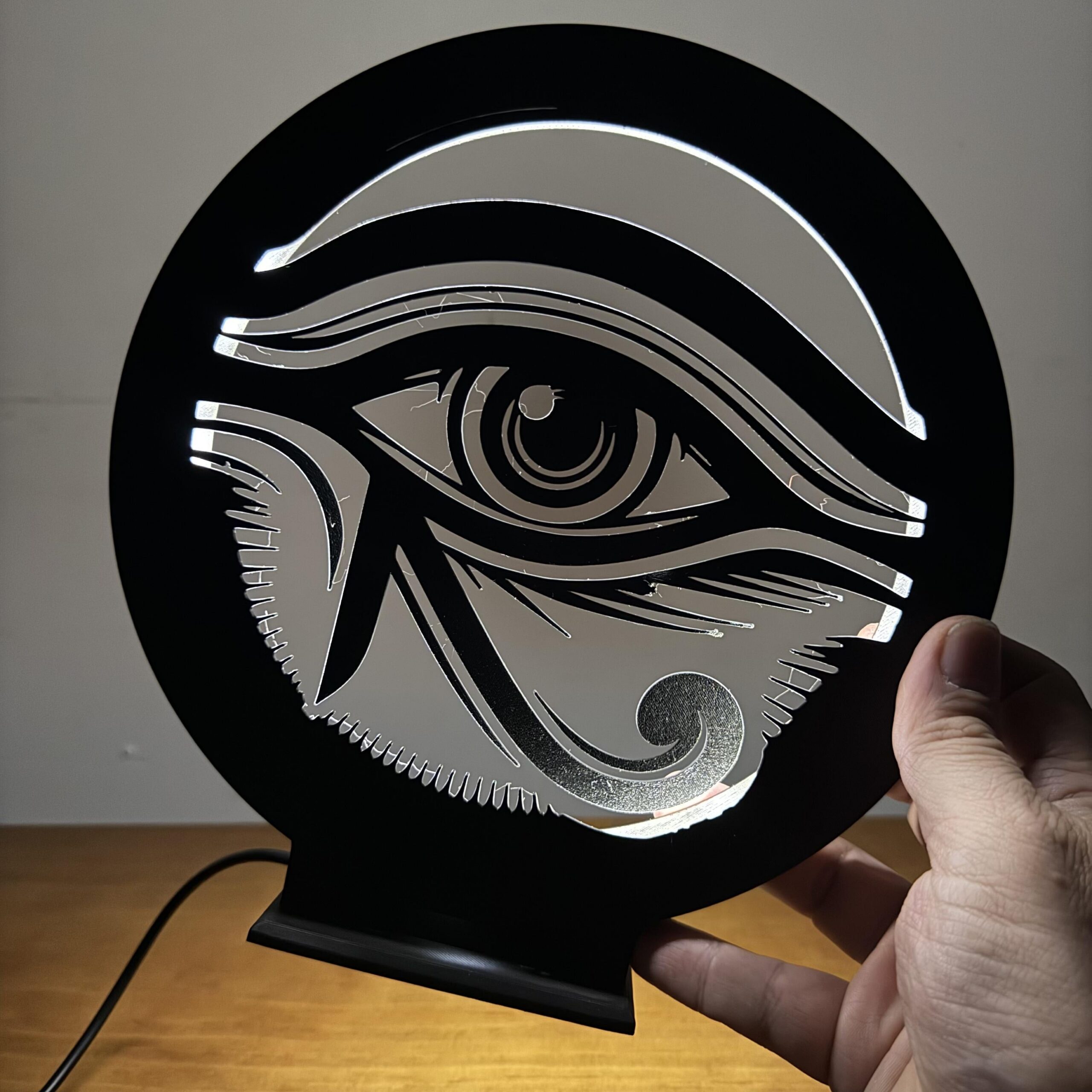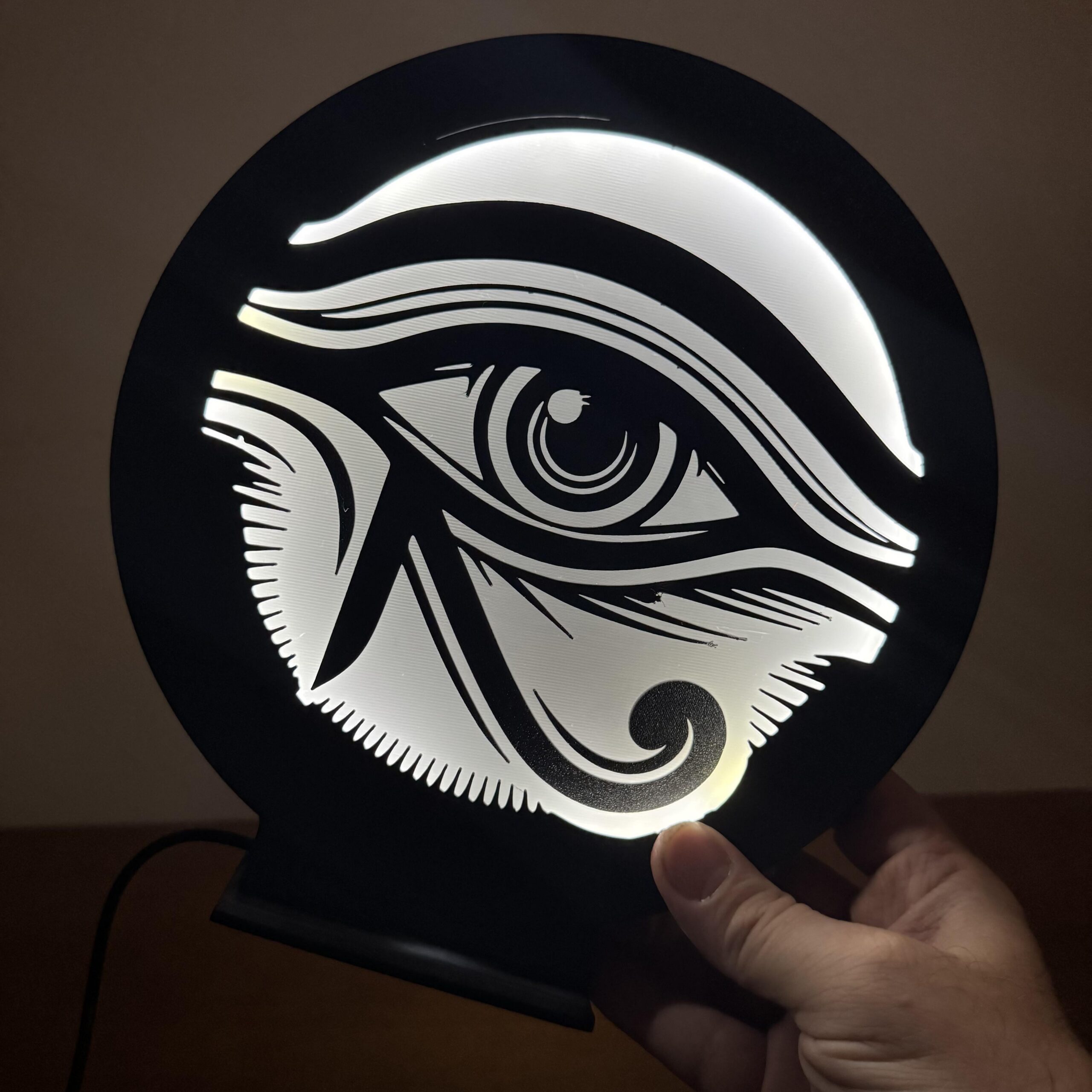 A Luminária LED Olho de Hórus une o visual minimalista da arte oriental com um design urbano que chama atenção mesmo desligada — ligada então, é espetáculo 🔥