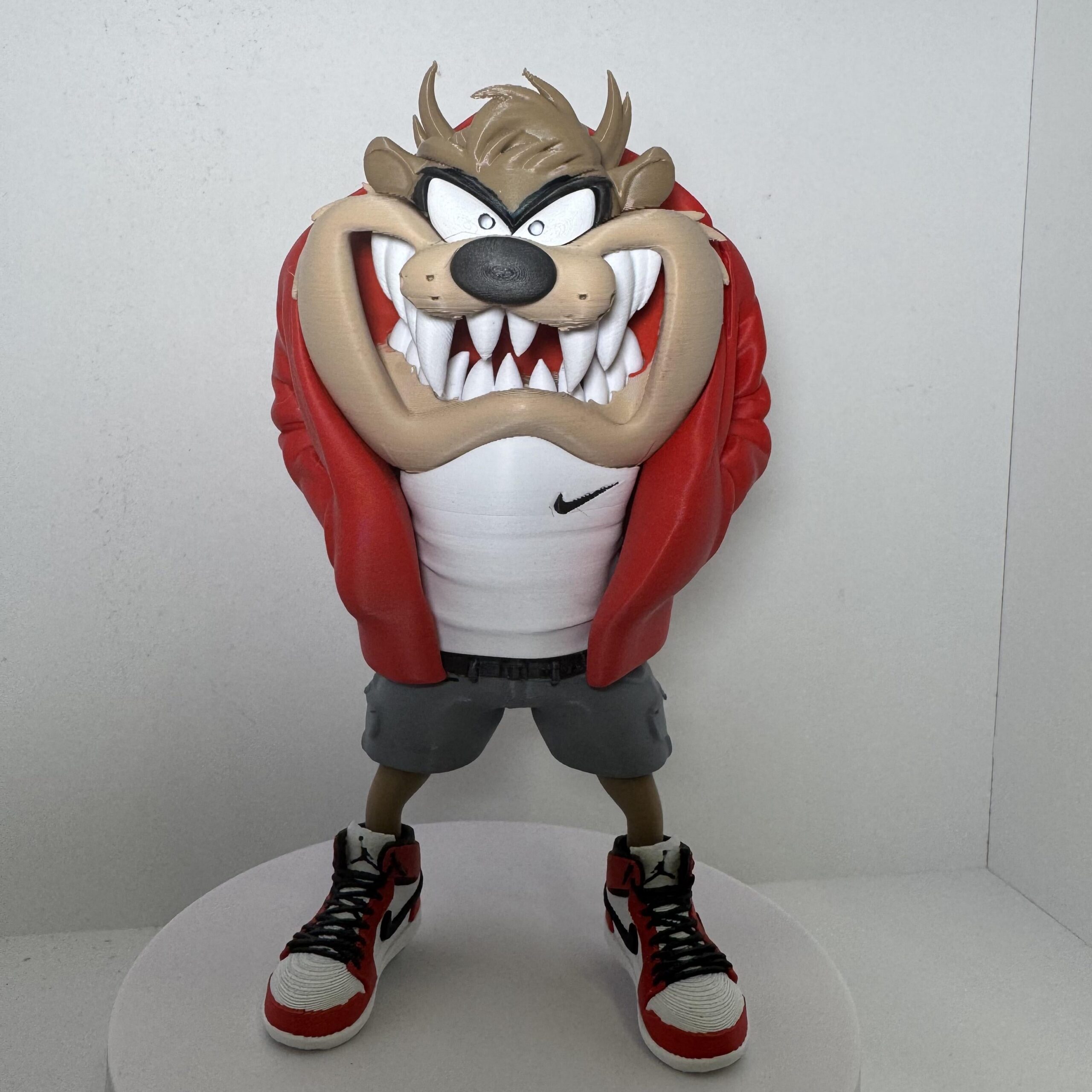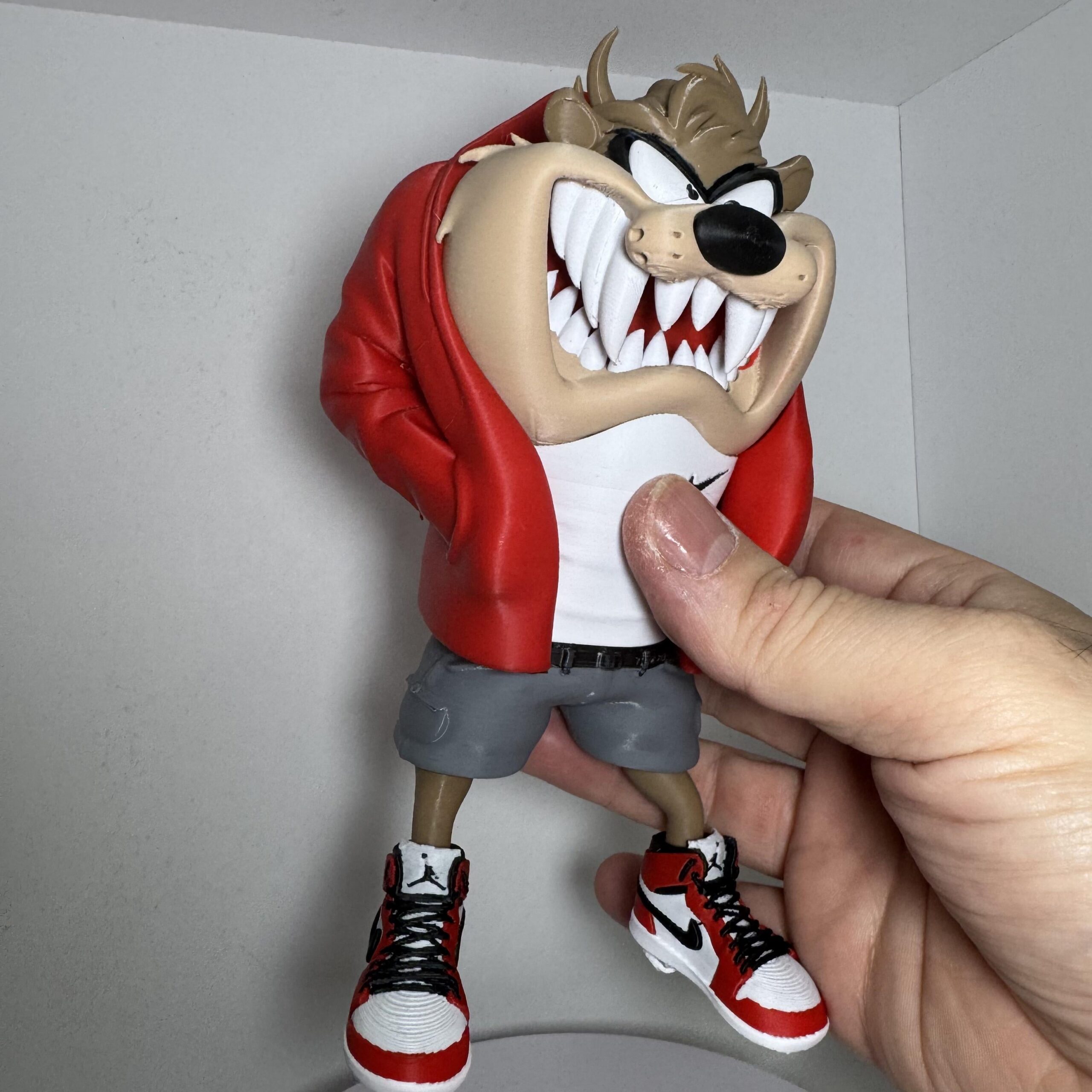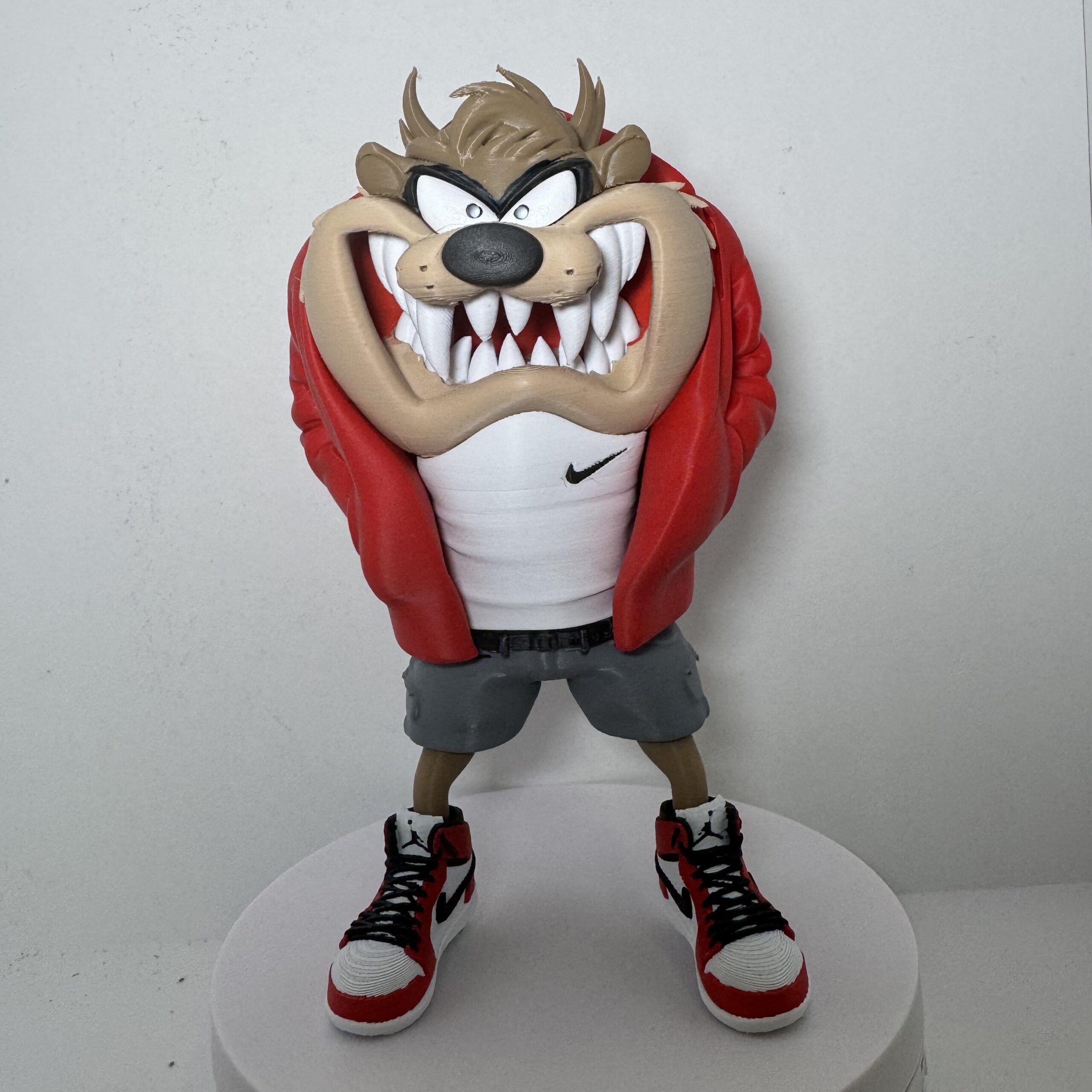 Com jaqueta larga, bermudão, camiseta branca e aquele tênis clássico que todo maloqueiro raiz respeita, o Taz chega com a cara de poucos amigos… do jeitinho que a quebrada gosta. 😈